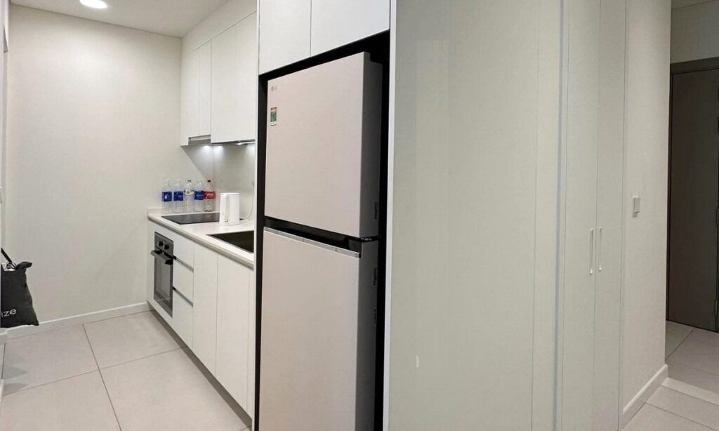 Căn hộ đã được trang bị full nội thất, chọn tone màu hiện đại, chỉ cần mang vali vào ở. Các chi tiết như sofa, giường nệm, tủ bếp, thiết bị bếp và máy giặt đều còn mới, hoạt động tốt.