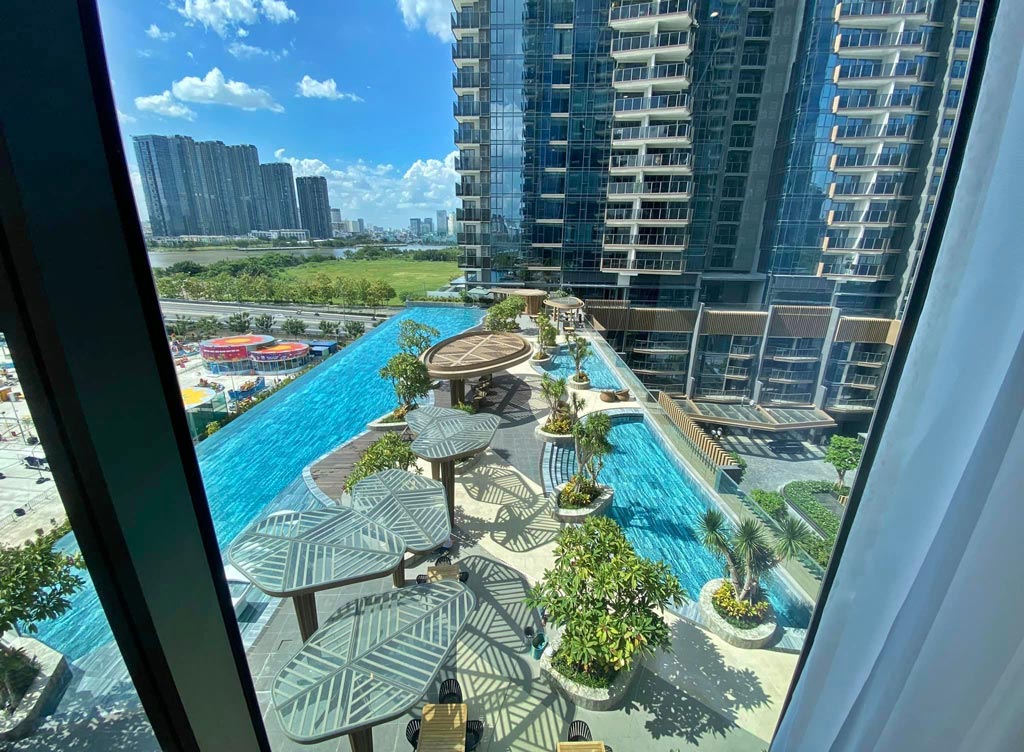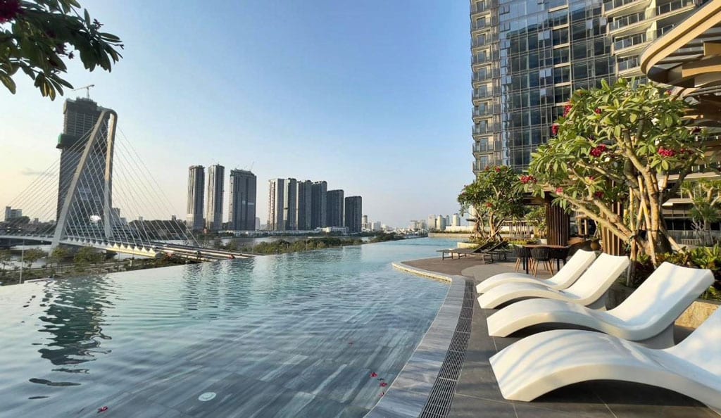 - Tầng 5: Dành riêng cho cư dân với hồ bơi dài 50m view trực diện sông, 2 phòng Gym hiện đại, phòng Golf giả lập, Yoga, Sauna và nhà sinh hoạt cộng đồng.