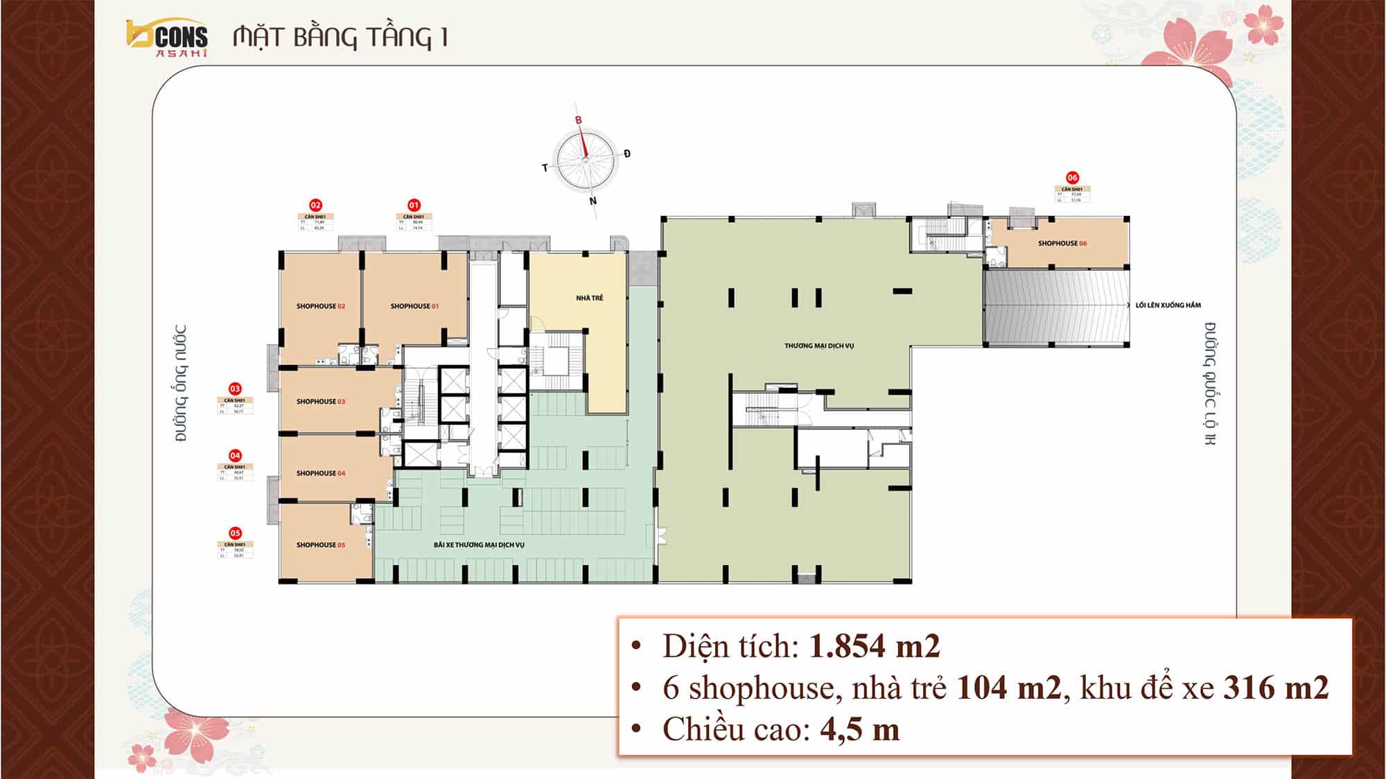 Bcons Asahi tọa lạc trên trục Quốc lộ 1K (Hoàng Cầm), nằm ngay phường Đông Hòa – một trong những khu vực tiếp giáp trực tiếp với TP. Thủ Đức và chỉ mất vài phút để đến Làng Đại học Quốc gia TP.HCM. Đây là vùng có tốc độ đô thị hóa nhanh, nơi tập trung lượng lớn chuyên gia, giảng viên, kỹ sư công nghệ, sinh viên và đội ngũ lao động trẻ.