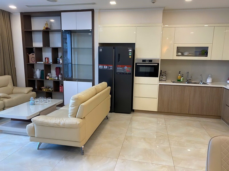 Toàn bộ căn hộ được trang bị nội thất đồng bộ, hiện đại, phù hợp khách thuê cần sự tiện nghi. Không gian phòng khách, bếp và phòng ngủ đều được bố trí chăm chút, đảm bảo sử dụng lâu dài mà không cần đầu tư thêm.