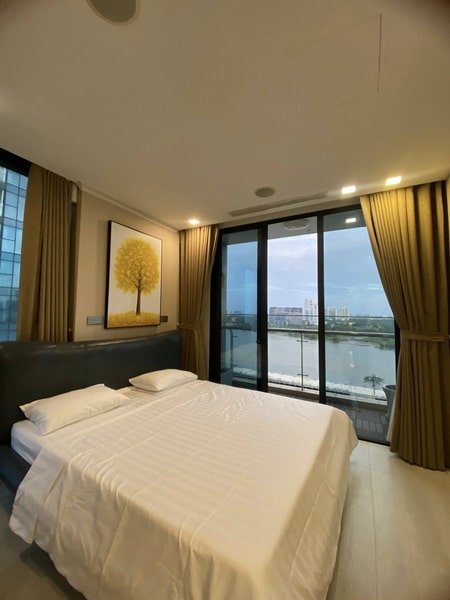 Từ căn hộ có thể nhìn trọn Cầu Ba Son và dòng sông phía trước, tạo cảm giác thoáng và dễ chịu ngay trong nhà. Đây là một trong những tầm nhìn được nhiều khách thuê đánh giá cao vì vừa đẹp vừa mang lại sự thư giãn sau một ngày làm việc.