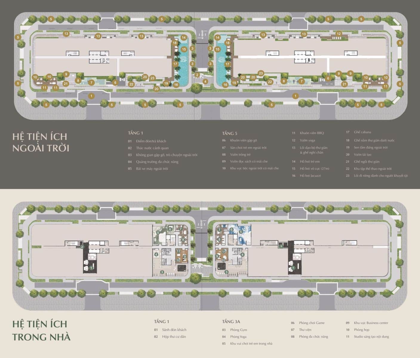 Toàn bộ tiện ích được thiết kế theo tiêu chuẩn dự án cao cấp, đảm bảo phục vụ đầy đủ cho cư dân ở mọi lứa tuổi.