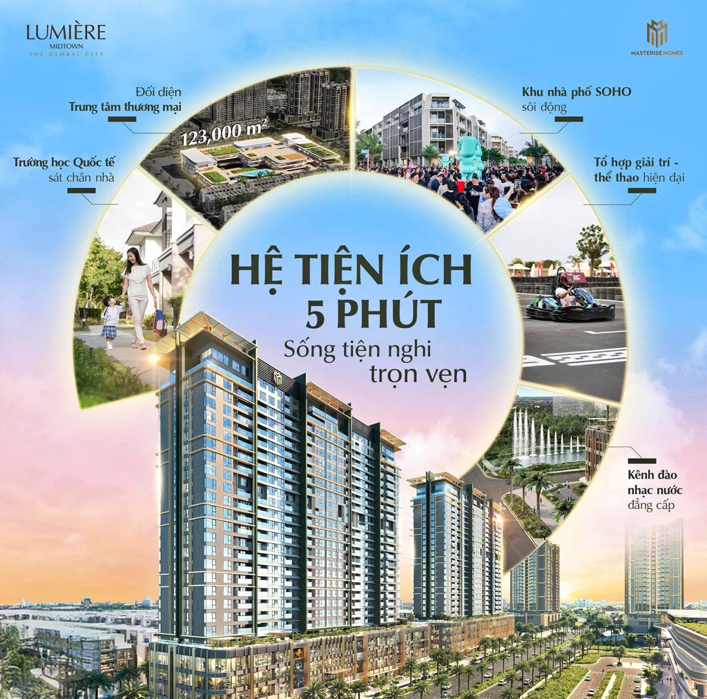Lumiere Midtown là dòng căn hộ cao cấp thuộc Lumière Series do Masterise Homes phát triển trong khu đô thị quốc tế The Global City. Đây là phân khúc được định vị dành cho cư dân thượng lưu, tiếp nối thành công của Lumière Boulevard (Q9) và Lumière Riverside (Q2). Sở hữu vị trí đắc địa ngay mặt tiền đường Liên Phường, đối diện trung tâm thương mại 123.000 m² lớn nhất Việt Nam và liền kề kênh đào nhạc nước dài 2 km, dự án được đánh giá là một trong những tâm điểm thu hút nhất thị trường TP. Thủ Đức giai đoạn 2025 – 2030.