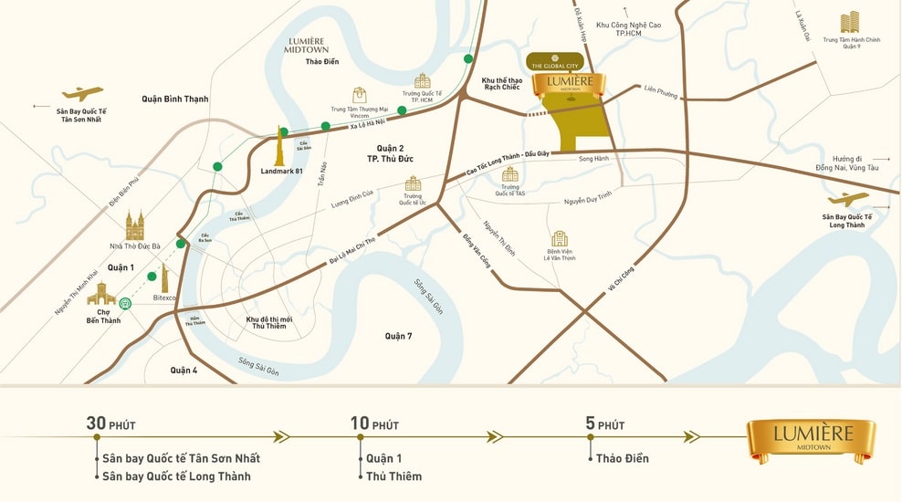 Lumiere Midtown nằm cạnh Thảo Điền – nơi tập trung cộng đồng chuyên gia quốc tế, gia đình tri thức và người nước ngoài làm việc tại TP.HCM. Điều này giúp dự án sở hữu lợi thế rất lớn về: